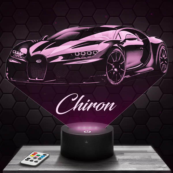 Fascinating, innovative and completely original, the Supercar Bugatti Chiron Super Sport300+ 3D LED Lamp is the must-have of the moment!Our lamps consist of an engraved and laser cut plexiglass plaque and an illuminated LED base. The engraved pattern lights up when the base is switched on, giving an impressive 3D hologram effect! For the living room, bedside or desk, this lamp lends a modern touch to your home!In addition to the impressive optical illusion effect, this Supercar Bugatti Chiron Super Sport300+ 3D LED lamp‘s soothing mood lighting is ideal for intimate atmospheres.Thanks to the range of illuminated bases available on Pictyourlamp.com, you can change colours whenever you like. Simply use the touch-sensitive controls on the base, or the remote control supplied with most of the bases, so you don’t even have to get up. Choose an illuminated base that features your favourite design!All our products are produced by laser engraving and cutting in our workshops located in France. We produce your orders within 24 hours (excluding weekends and holidays) and deliver to your door within 48 hours throughout Europe.In terms of electric energy consumption, all of our 3D Lamps are extremely economical. That’s because our designs consume 3 to 5 watts, which is very little for a light fixture.All our products have a 1-year guarantee. Quality is assured. If your base should be defective during this period, we will replace it as soon as possible. Nevertheless, our products are particularly reliable: the 3D lamps are designed for a minimum duration of 50,000 hours, which is equivalent to more than 5 years based on keeping the lamp on for 24 hours a day, 7 days a week, 365 days a year.Don’t wait, order your Supercar Bugatti Chiron Super Sport300+ 3D LED lamp now. We will send it to you today (except weekends) and you will receive it within 48 hours.