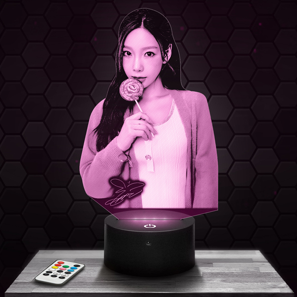 Show your admiration for Taeyeon with this unique 3D lamp, a luminous piece that embodies the elegance and charisma of this iconic artist. Its finely engraved acrylic glass design highlights every detail of her face and captivating expression. The touch LED base offers up to 7 colors, creating a soothing and inspiring ambiance.