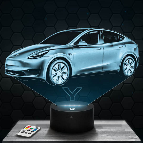 Discover our 3D lamp of the Tesla Model Y car, a real gem for sports car lovers. With its black LED RVB tactile light base and its remote control, this lamp offers a fascinating visual experience. The acrylic glass plate engraved in high definition and laser cut in our workshops in Clermont-Ferrand gives a realistic hologram effect which will illuminate your living room, your bedroom or your office.