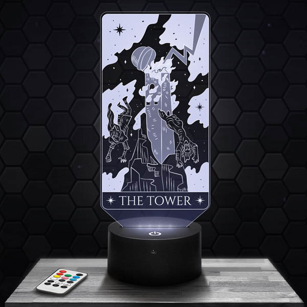 Discover the Tower Tarot Arcana, a 3D lamp that will immerse you in the mysterious universe of clairvoyance and cartomancy. Thanks to its acrylic glass plate engraved in high definition and laser cut in our workshops in Clermont-Ferrand, this lamp offers an exceptional quality.
