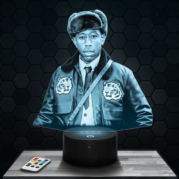Express your admiration for Tyler the Creator with this original 3D lamp, a luminous piece that captures the creative and bold essence of this iconic artist. Its finely engraved acrylic glass design highlights every distinctive detail of his style. The touch LED base allows you to choose up to 7 colors, for a vibrant and inspiring atmosphere.