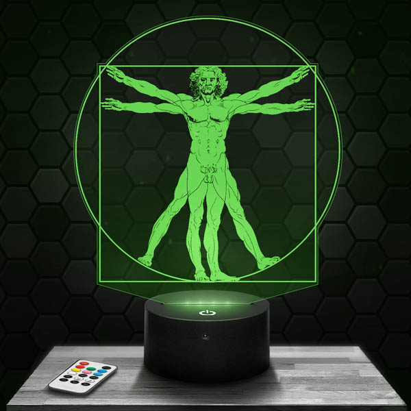 Whether for the living room, the bedroom or as a desk lamp, our “Vitruvian Man by Leonardo da Vinci” lamp will bring an artistic and elegant touch to your interior. It is also a perfect gift for a birthday or for Christmas. The included remote control allows you to easily change colors and create a unique atmosphere. With more than 500 models of your choice, our e-commerce site “Lampephoto” offers the largest catalog in Europe in terms of 3D lamps. In addition, our lamp has low energy consumption (<5W) and can be powered by batteries or by USB cable. Do not waste time, order your lamp "Vitruvian Man by Leonardo da Vinci" now and enjoy a manufacturing time of only 24 hours. Treat yourself to a unique piece that combines Harmony, Sciences and Symbol of the Renaissance.
