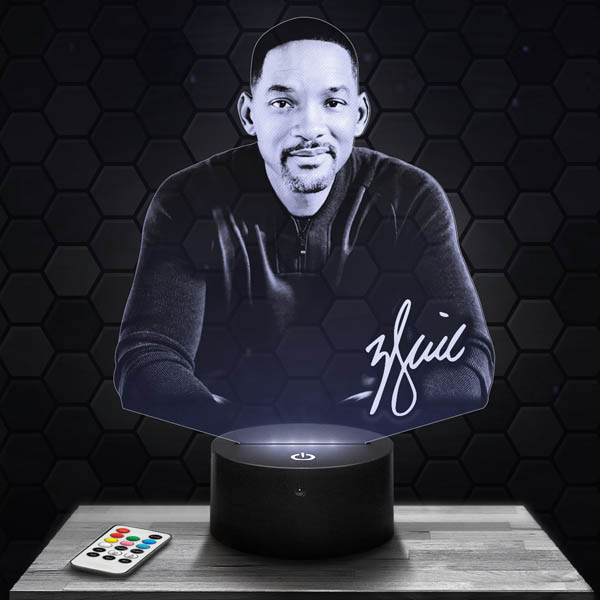 Will Smith is a globally renowned actor and rapper. He has starred in successful films such as “Men In Black,” “Independence Day,” “The Pursuit Of Happyness,” and many others. He is also known for his role in the series “Fresh Prince Of Bel Air.” With multiple Oscar nominations and a career rich in comedies, Will Smith is a true cinema icon. Our 3D lamp pays tribute to this talented actor and allows you to have him at home. Don’t miss the opportunity to add this 3D Will Smith lamp to your collection or give it as a gift to a fan of this legendary actor. Order now and enjoy a production time of only 24 hours.