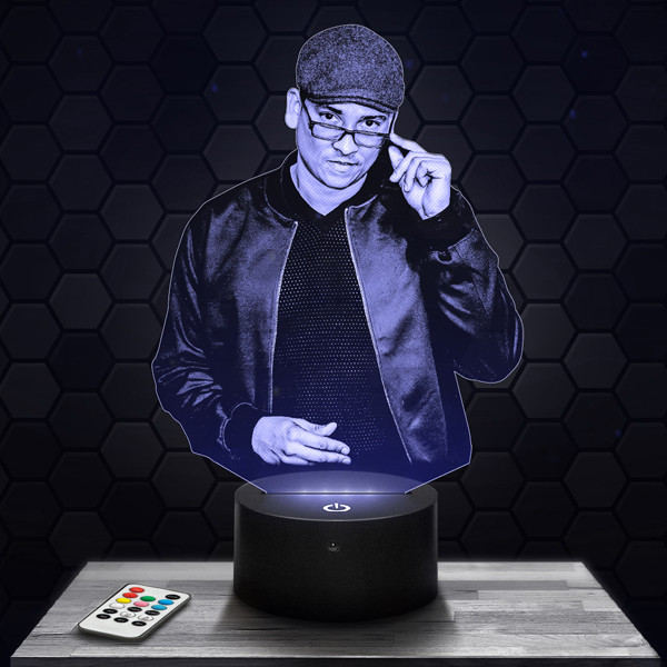 Show your admiration for Xavier Naidoo with this unique 3D lamp, a luminous piece that embodies the soul and passion of this renowned artist. Its finely engraved acrylic glass design highlights every detail of his face and every iconic expression. The touch LED base offers up to 7 colors, creating a warm and inspiring ambiance.